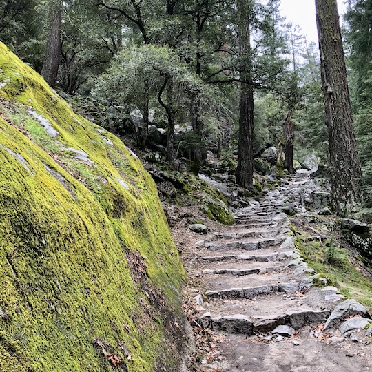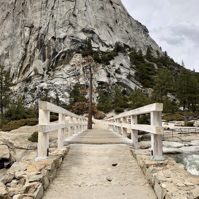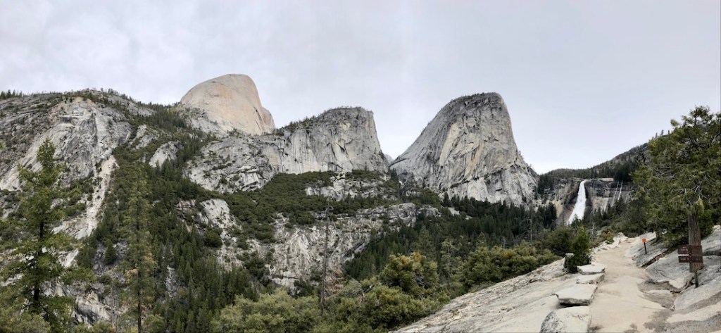 Our original destination were the Vernal Falls – however, soon we decided to even climb up to the Nevada Falls. From the car park at 1200 metres altitude we gradually walked up, thus to 1800 metres. A few signs help to find the way. We had no rain that day but the clouds made the lighting for taking photos somewhat difficult. Nevertheless, Michael took many amazing photographs.