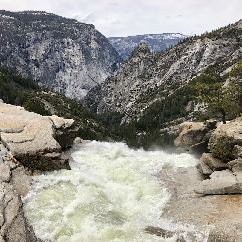 We arrived to the Nevada Falls after a quite tiring climb of 600 meters in altitude. As we had not planned to go on a longer hike we had no water or snacks with us. Too bad! The top of Nevada Falls is the perfect pick-nick spot.