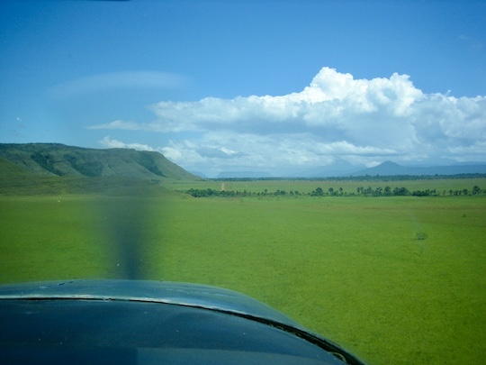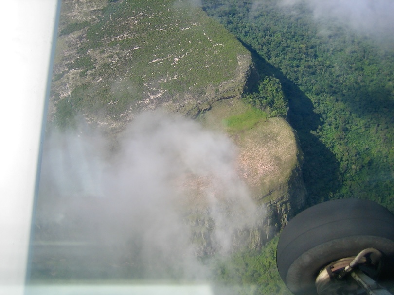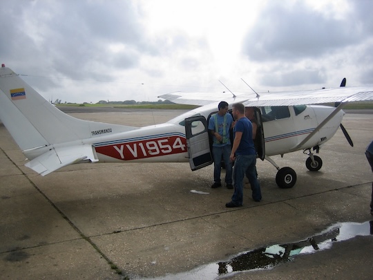 So the next morning we were brought to the airport again. Upon arrival a surprise expected us. Both Michael and I looked at each other when spotting the rather old Cesna. Luckily we were not the only tourists. After having packed the machines we took off for a three hours flight over the Venezuelan cloud forest.