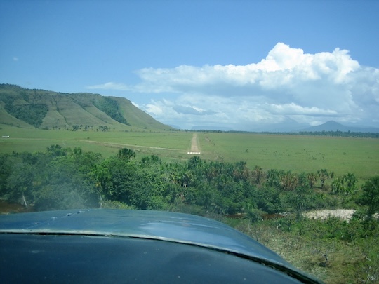 The flight was very pleasant again and we could enjoy the beautiful landscape, Michael a little less though. As we approached Kavac we suddenly realized that we will land on a natural runway. This was really exciting as we never did that before. So, slightly worried we descended to the ground.