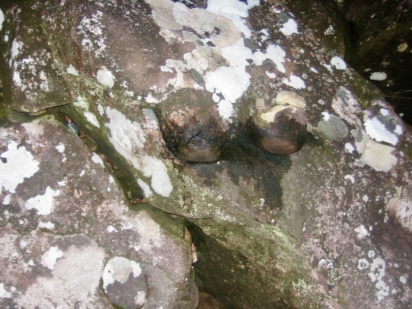 At the end of a canyon we reached a little lagoon where a river dropped over a cliff. It was the most wonderful experience to discover this place! Unfortunately, the photos I took were not good as the water sprayed so much onto the lens of the camera. On the way back our guide showed us a sacred place where an angel was supposed to haven fallen from the sky. The angel fell and left her marks in the stone: two round wholes where her breasts touched the ground…
