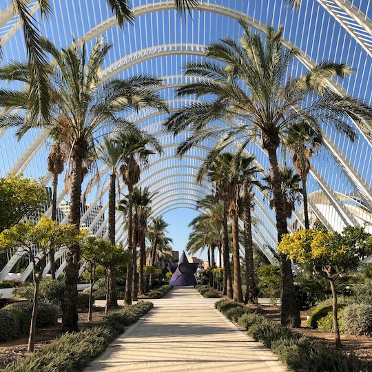 Valencia has several striking landmarks. One of them is the river bed. In the 1980s – after the city had been flooded by the river El Turia – citizens voted for the construction of a new river bed that would go around the city. They converted the old riverbed into a magnificent park of about 8 km lengths: The Garden of Turia. Luckily they succeeded as the original plans were to build a city highway instead!