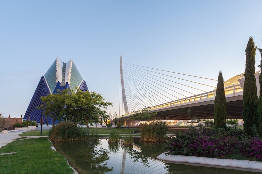 When you follow the river bed towards the sea you will arrive to a second landmark: the City of Sciences and Arts. It is an entertainment-based cultural and architectural complex designed by Santiago Calatrava and Félix Candela.