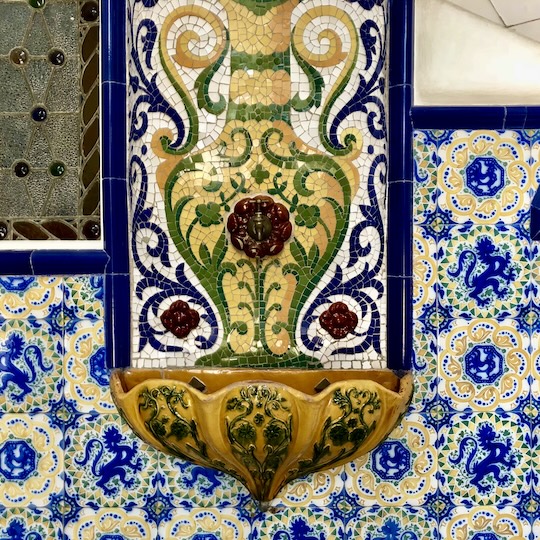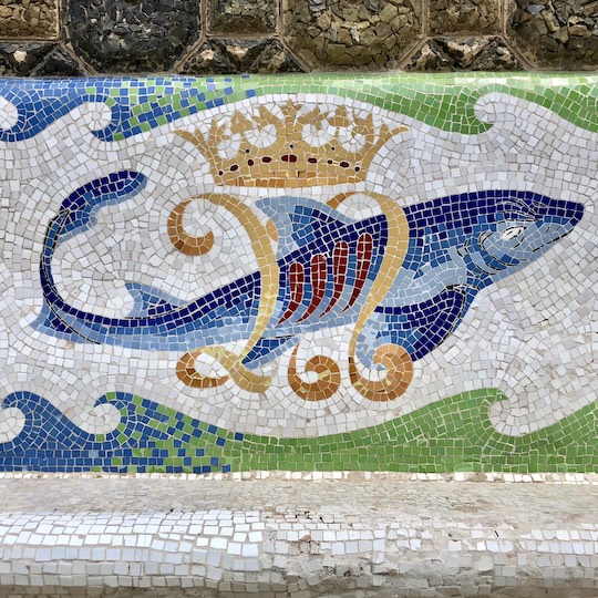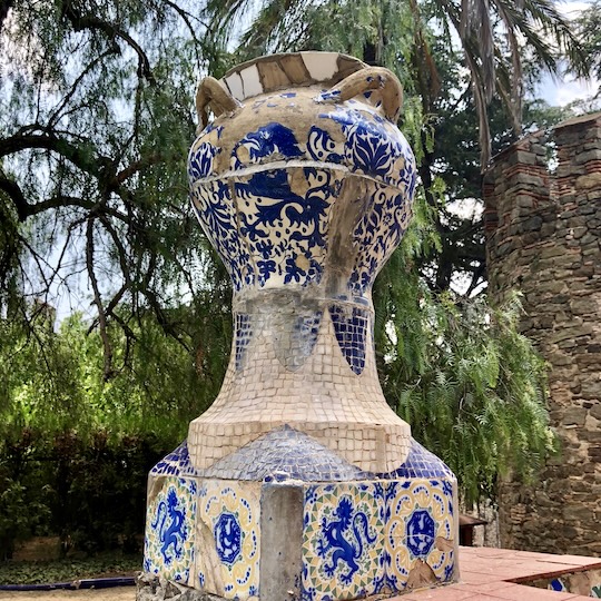 Catalan Modernism has many typical style elements. Among them one can find mosaics. Especially Gaudí perfected a technique that is called “trencadís” in Catalan and it means broken. He purchased tiles of inferior quality from factories, broke them and put the random shards artistically together. This way he created many mosaics. Next to mosaics, tiles in general were used a lot when building in the period of Modernism (approx. 1880-1915).