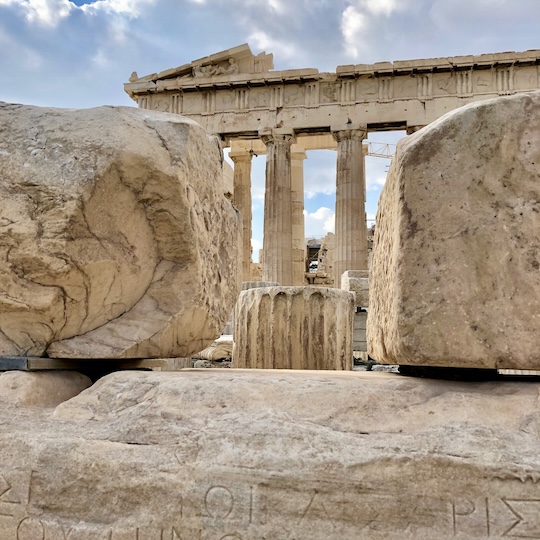 On Sunday all the historic sites in Athens were open to the public – free of charge! So we joined the masses climbing up the Akropolis. People had settled already about 5000 years ago on this hill, however, its current remains have been built in the 5th century BC by Perikles. the most famous site is the Parthenon, a former temple dedicated to the goddess Athena. Whilst the Greek and Romans maintained the building well, under Byzantine rule it was converted into a church and then under Ottoman rule into a mosque. Unfortunately, in 1687, during the siege by Venice, the Akropolis got largely destroyed because the Ottomans used it as a gunpowder magazine, that exploded after a Venetian cannon ball hit the Akropolis.