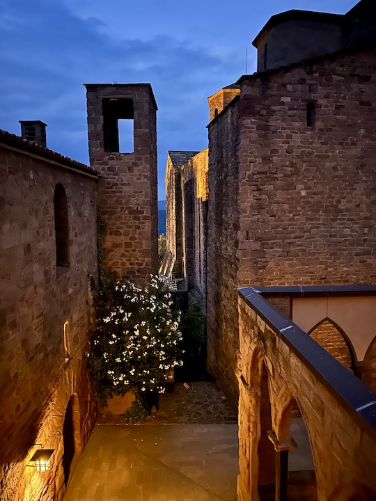In 1976 the castle was taken over by the Parador Hotels and intensively restored. As their website states: “The transformation struck a balance: preserving medieval architectural features (moats, towers, Gothic walls) while adapting interiors for modern hospitality — including comfortable guest rooms, a rooftop restaurant in the old refectory, and period-inspired décor.” We spent a lovely night at the hotel feeling like being of noble descent.