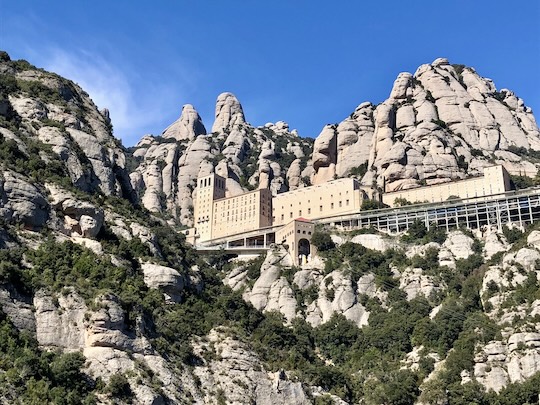 The ride was very pleasant. Driving through the Catalan countryside is always a joy. We drove along the mountain monastery of Montserrat. This iconic mountain is very dear to us and every time we see it, pass by or hike on the mountain we are in awe. It is located at 800m in the mountains and was built there 1000 years ago.