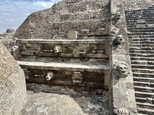 But its main purpose was to be home to the elite such as the heads of the Teotihuacán state. We climbed up the stairs and found some well preserved decoration. The heads of the serpents were very impressive.